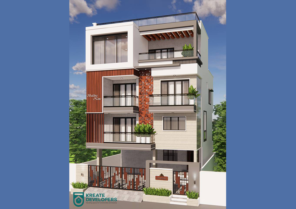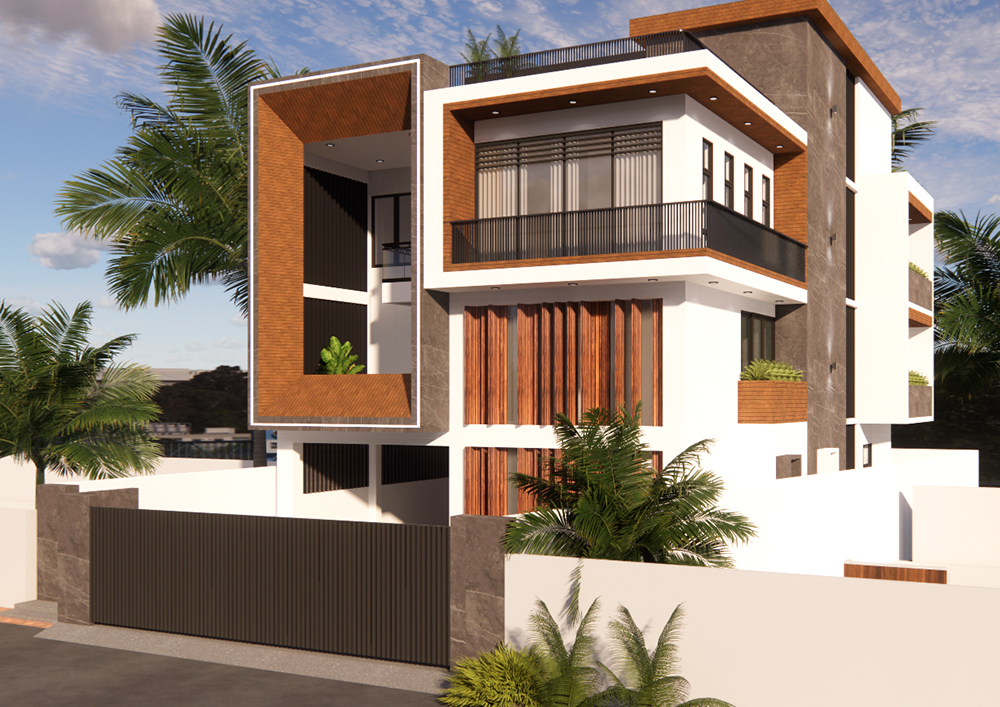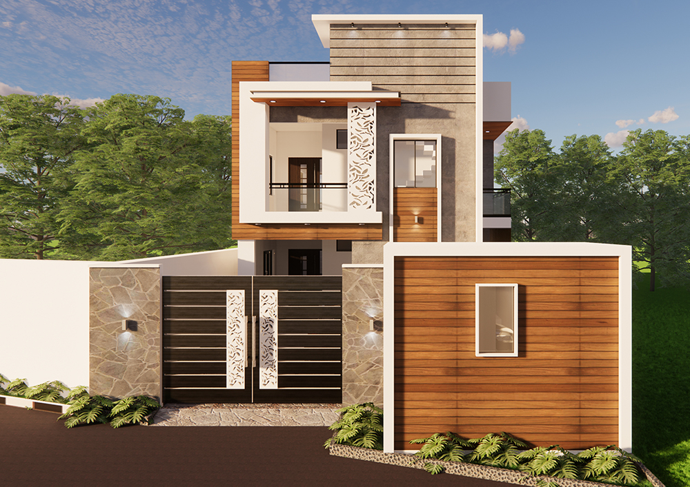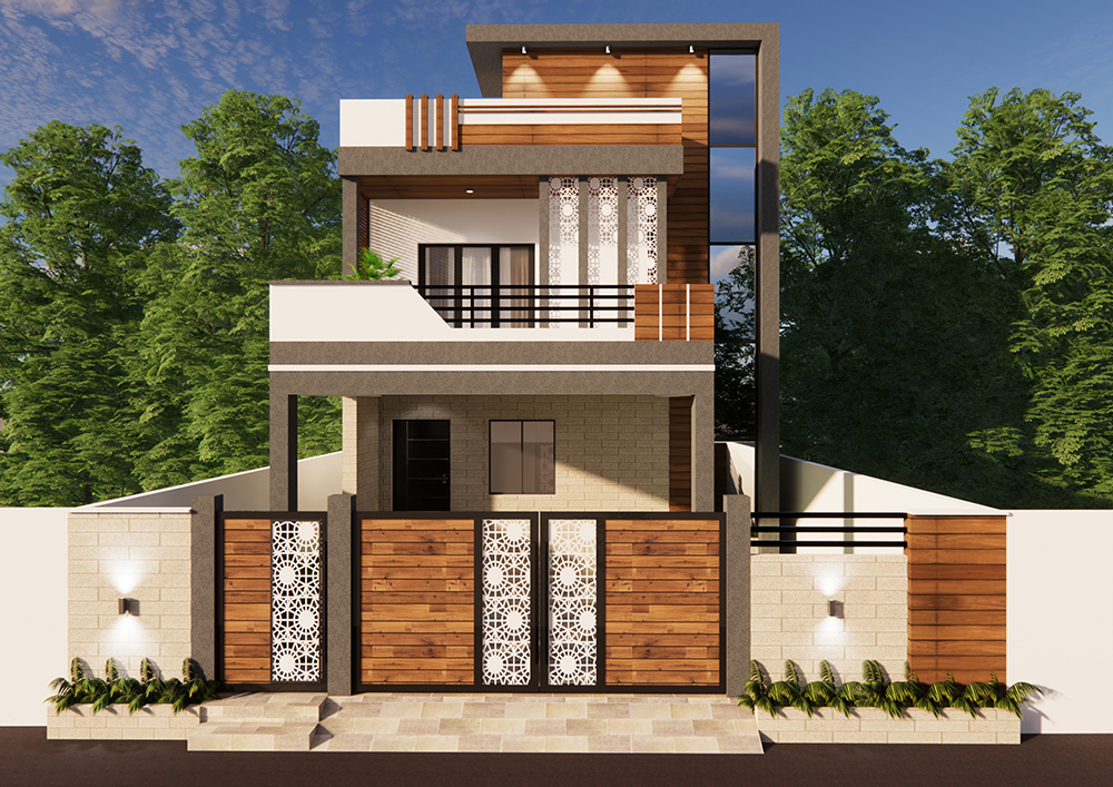 To create a distinctive elevation design, take note of the external facade and experiment with the placement of the windows, vents, and balcony. producing photo-realistic three-dimensional (3D) representations of the structures and areas, complete with authentic colors and material finishes.